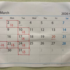 (詳しくは今月のお休みのお知らせをご覧下さい)